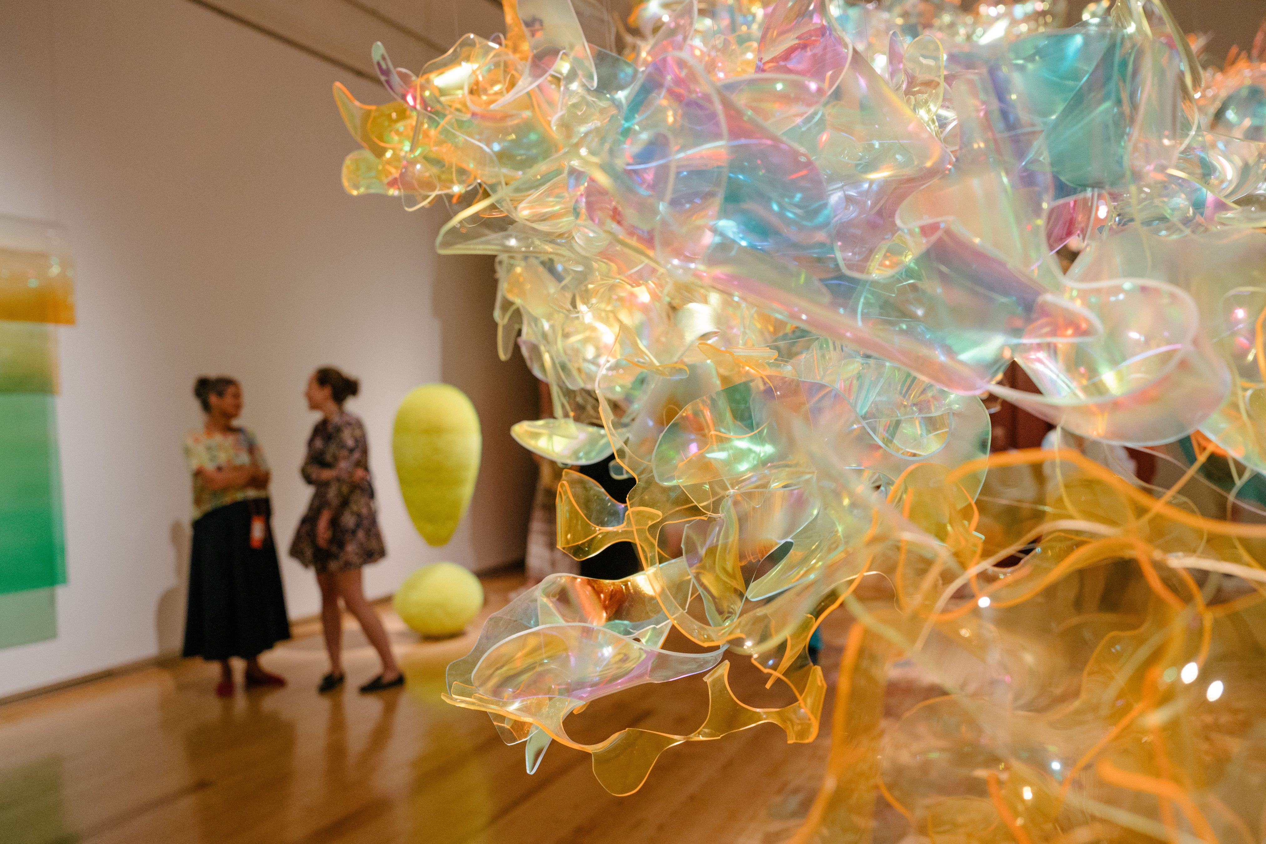 Zu sehen sind über 100 Werke von rund 50 internationalen Künstler*innen, darunter Monira Al Qadiri, Archigram, Arman, César, Christo, Haus-Rucker-Co, Eva Hesse, Hans Hollein, Craig Kauffman, Kiki Kogelnik, Gino Marotta, James Rosenquist, Pascale Marthine Tayou und Pınar Yoldaş.