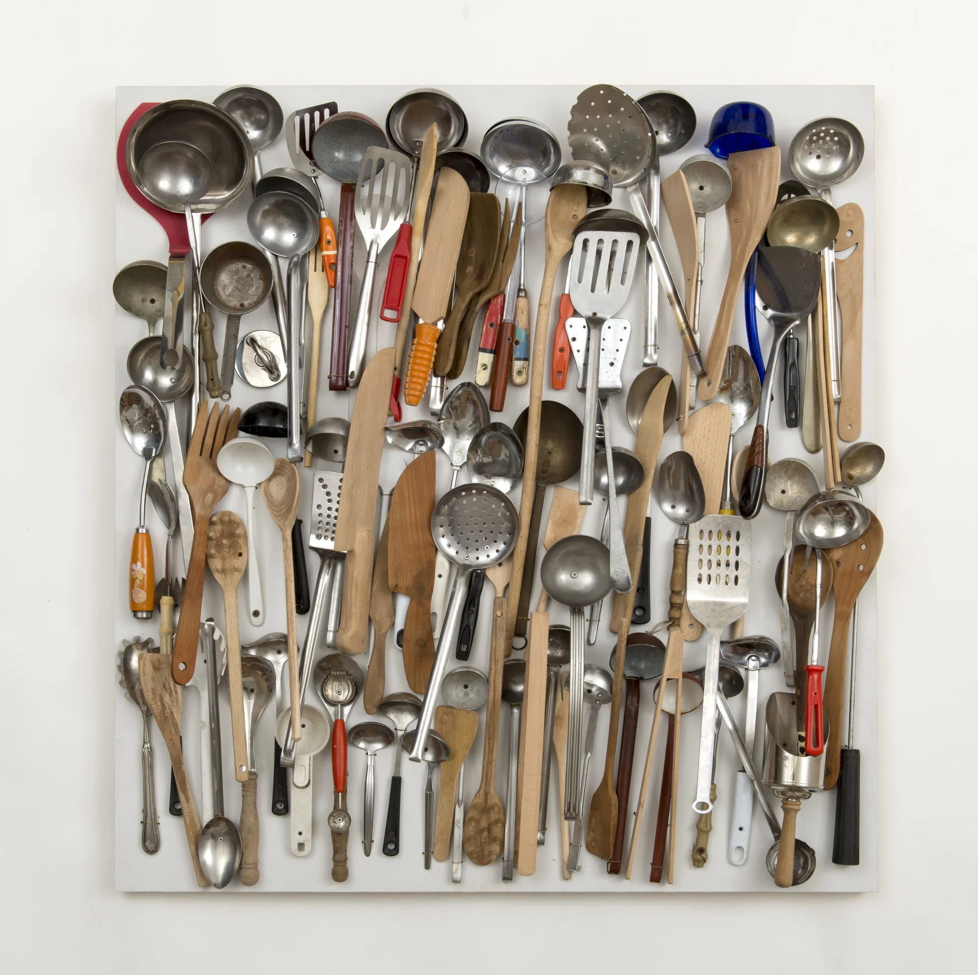 Fascinated by the diversity of everyday utility items, Spoerri collected kitchen utensils over many years. When he had amassed 723 kitchen items, he decided to reduce his collection and concentrate on potato peelers: âIt seemed to me that the typically Swiss virtue of thrift was expressed most perfectly and ironically in this invention.â This became another collection that comprised 100 slightly varying potato peelers.