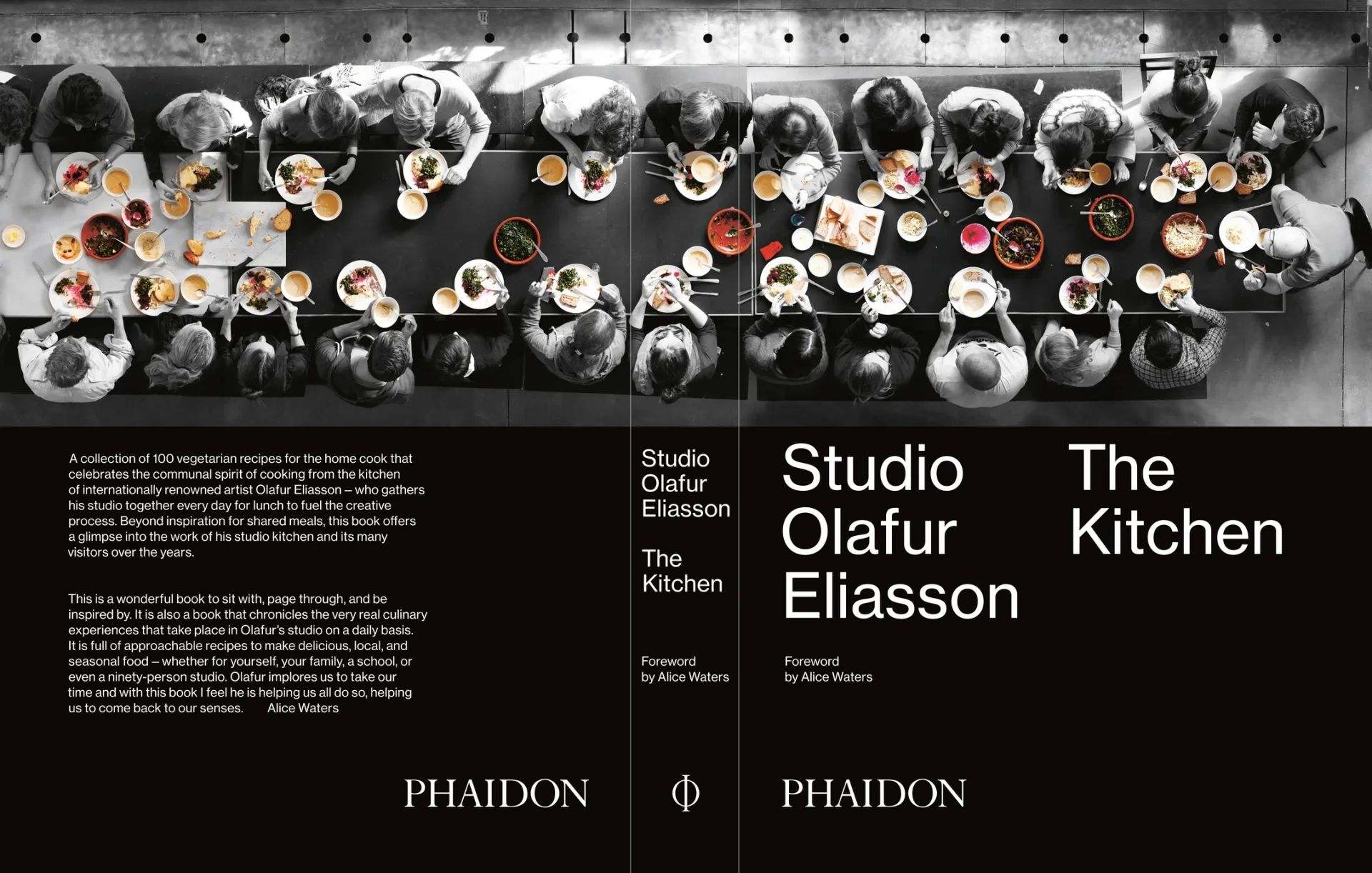 Only vegetarian recipes are to be found in the cookbook of Danish-Icelandic artist Olafur Eliasson. “What else is new?”, you might say. After all, for years the market has been flooded with cookbooks on vegan and vegetarian food. But Eliasson offers more. Day in, day out in his studio kitchen he gets together with a group of artists, employees and guests around a long wooden table to cook a communal lunch and exchange creative ideas. And both at the table and in his cookbook, there’s more to it than simply nourishment. It is about food as an element that can shape meaning: And so “The Kitchen” not only provides insights into the daily studio kitchen but is also a philosophical, scientific, almost poetic observation of food as a store of light and energy.