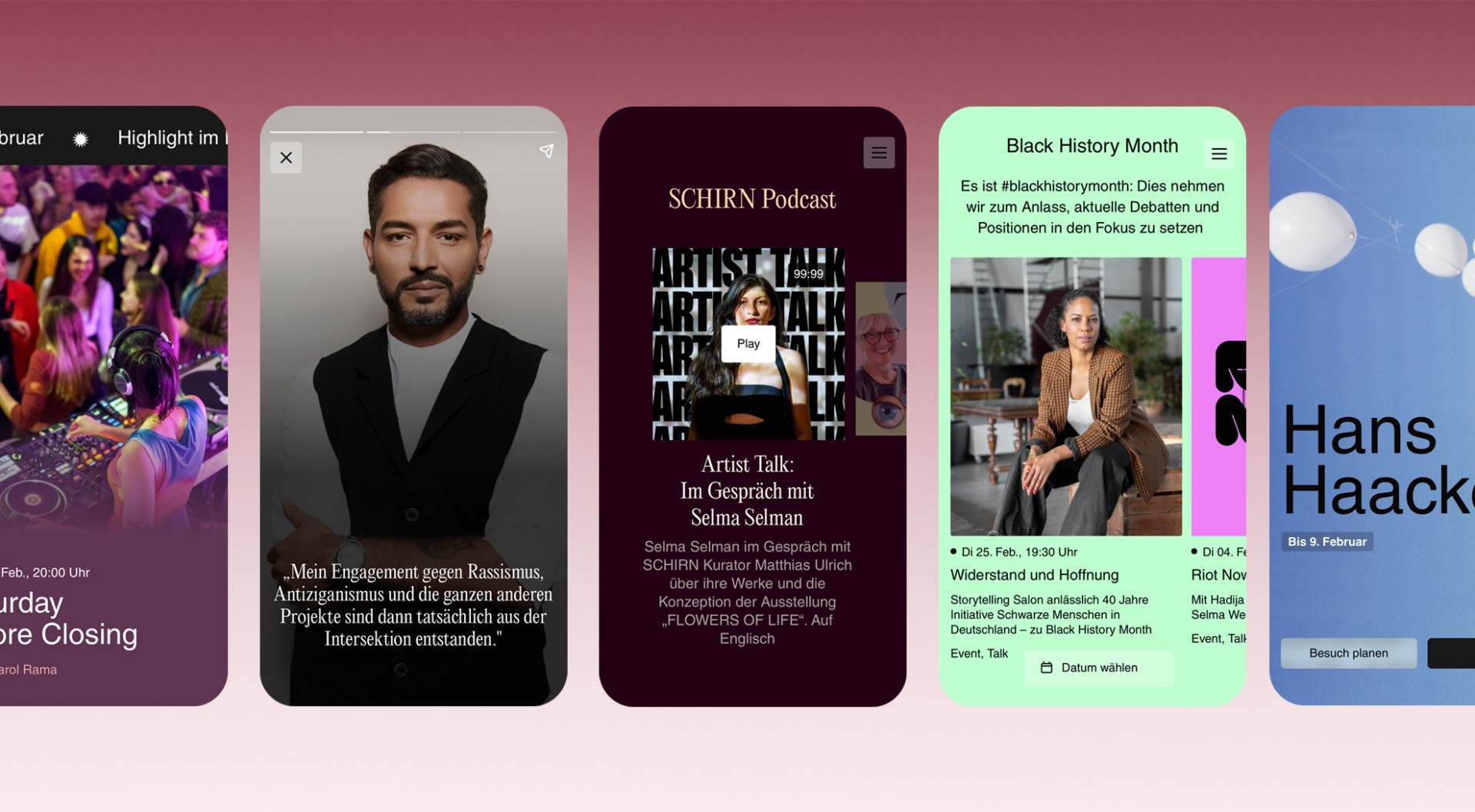 Welcome to the SCHIRN Lorem Ipsum SCHIRN MAG Inspired by the SCHIRN program but looking beyond it, we offer fresh impulses every week: exhibition and culture tips, exclusive playlists, videos, podcasts, and interviews with artists and experts. To the SCHIRN MAG
