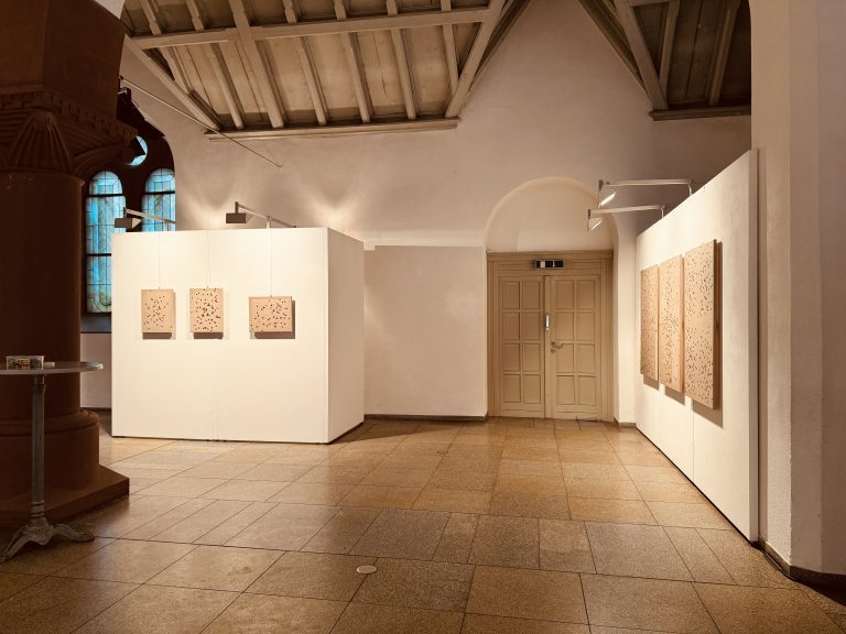 Huangs Bilder sind keine Illustration des Briefes Oscar Wildes, vielmehr diente er als Quelle der Inspiration. Die Künstlerin arbeitet nicht illustrativ, sondern assoziativ. Alle drei Leinwandformate sind an die Größenverhältnisse eines Blatt Papiers angelehnt. Und das Grau-braun der Leinwand? Vielleicht ist es das Herz, das zu Stein geworden ist, auch wenn ein Herz aus Stein nicht in der Lage gewesen wäre, solch einen Liebesbrief zu verfassen.